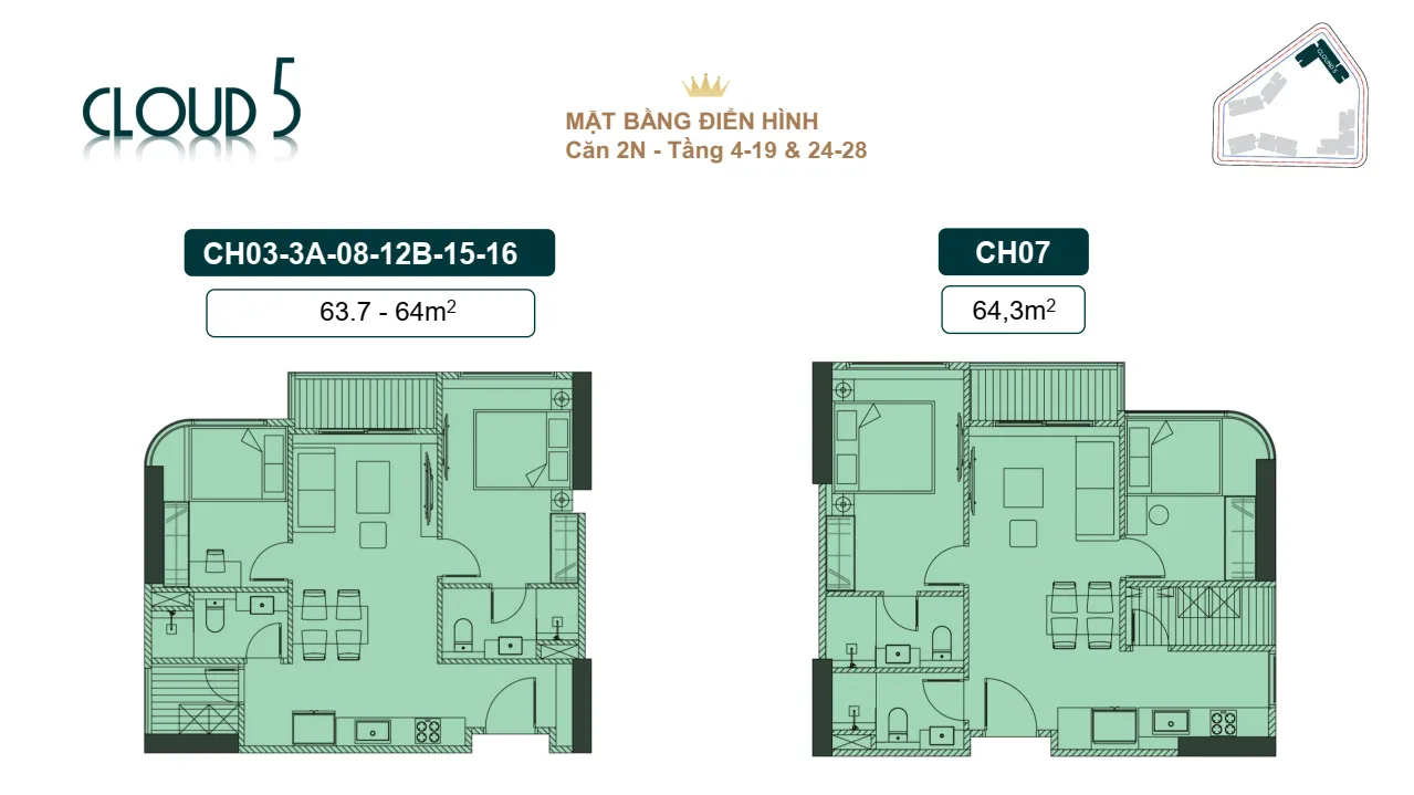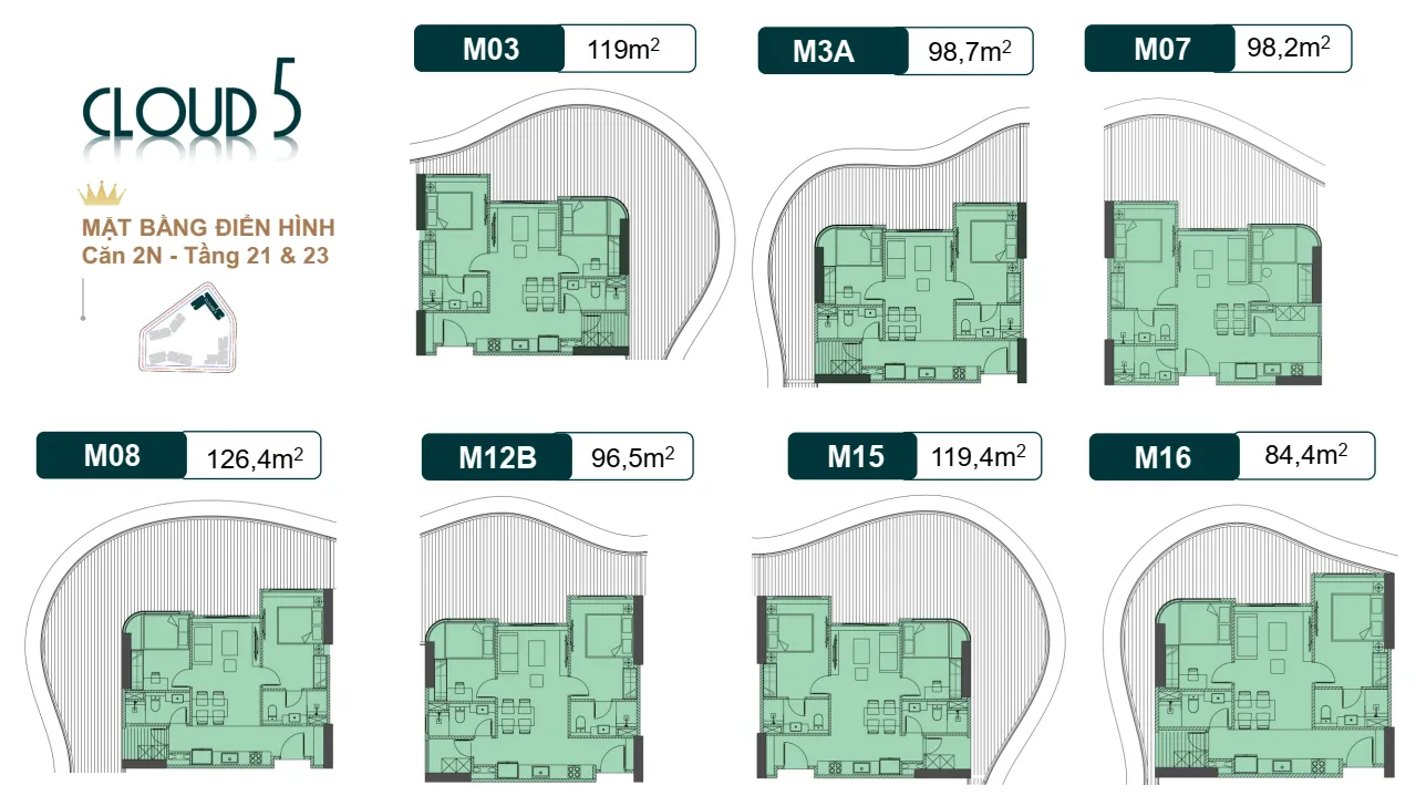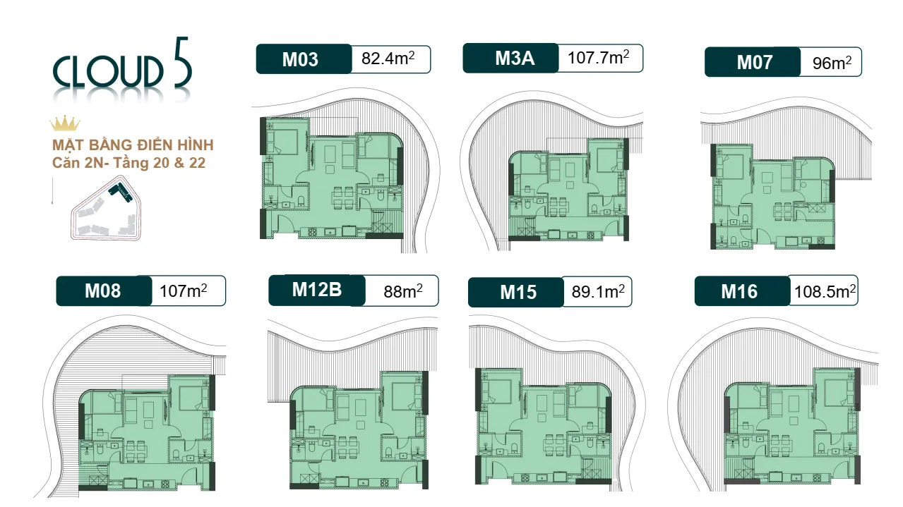Mặt bằng và layout Royal Mansion Tower Cloud 3 và Cloud 5